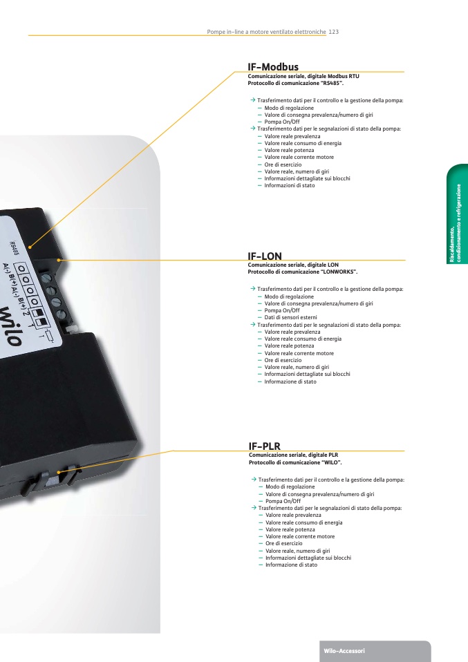 Trasferimento dati per le segnalazioni di stato della pompa: