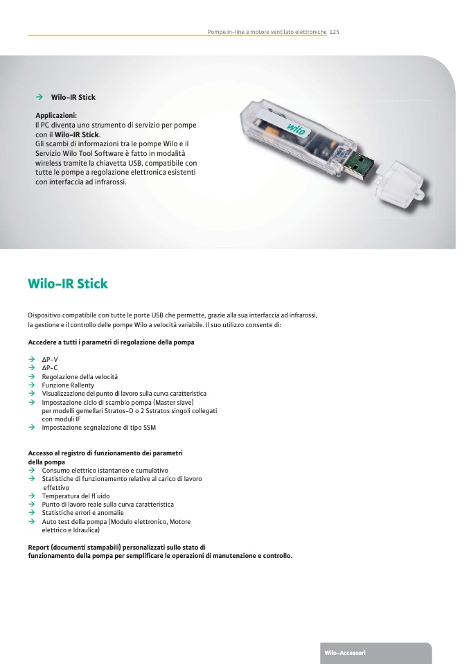 la gestione e il controllo delle pompe Wilo a velocità variabile. Il suo utilizzo consente di: