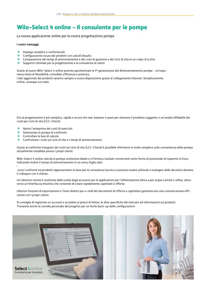 Grazie al nuovo Wilo-Select 4 online potrete sperimentare la 4a generazione del dimensionamento pompe - un'espe-