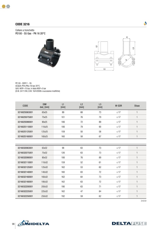 GAS: MOP=10 bar; In Italia MOP=5 bar