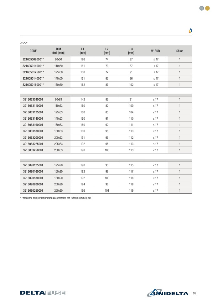 * Produzione solo per lotti minimi da concordare con l’ufficio commerciale