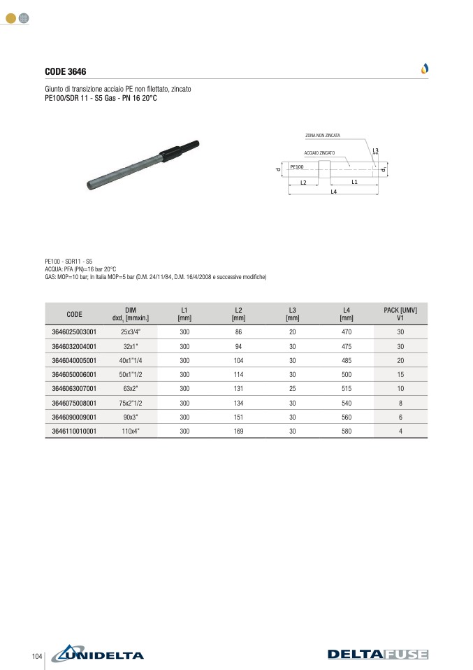 GAS: MOP=10 bar; In Italia MOP=5 bar (D.M. 24/11/84, D.M. 16/4/2008 e successive modi