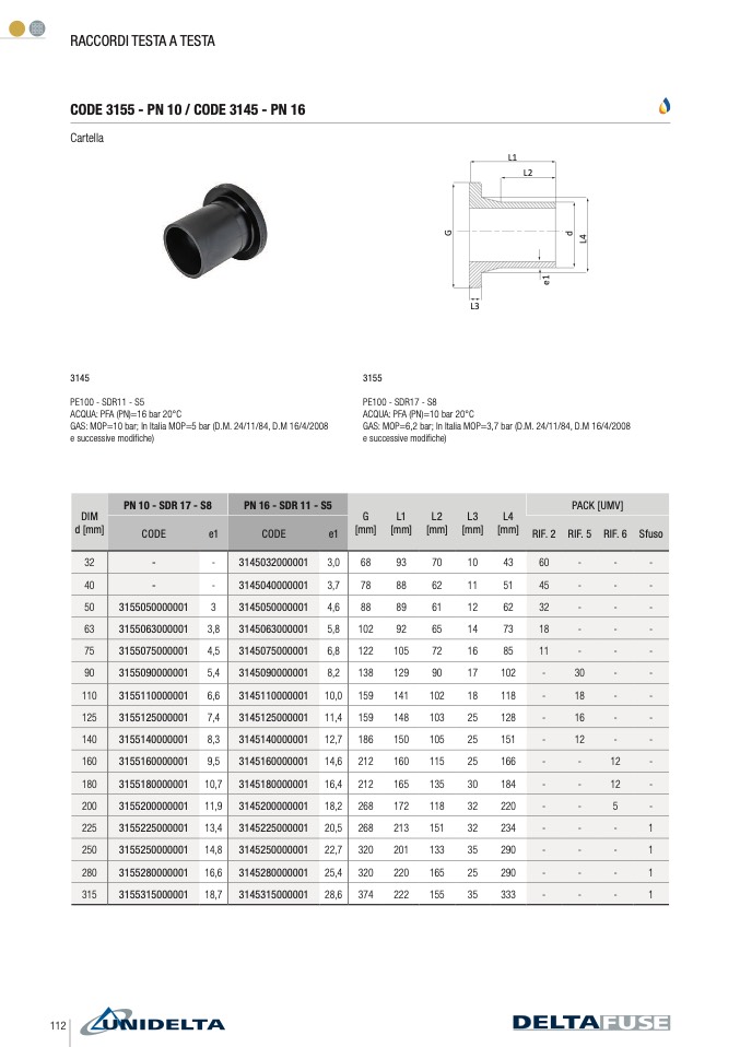 GAS: MOP=6,2 bar; In Italia MOP=3,7 bar (D.M. 24/11/84, D.M 16/4/2008