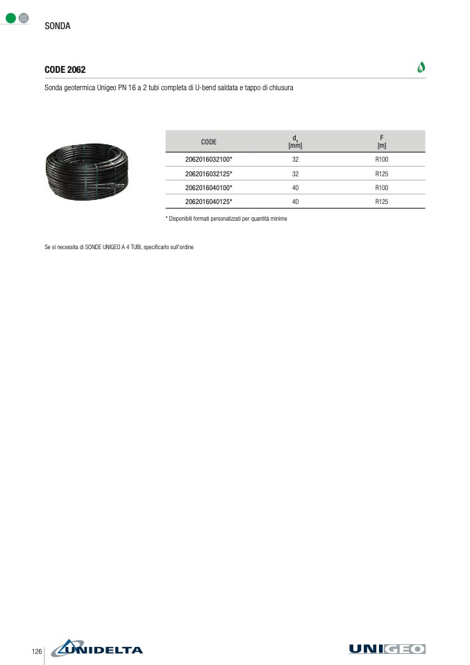 Se si necessita di SONDE UNIGEO A 4 TUBI, specificarlo sull’ordine