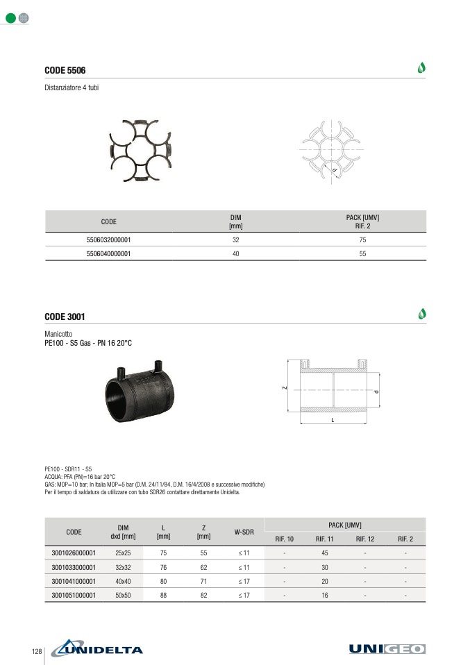 GAS: MOP=10 bar; In Italia MOP=5 bar (D.M. 24/11/84, D.M. 16/4/2008 e successive modi