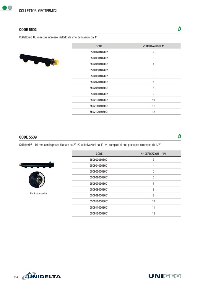 Collettori Ø 63 mm con ingresso filettato da 2” e derivazioni da 1”