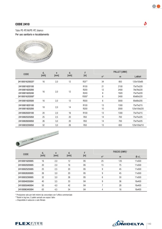* Produzione solo per lotti minimi da concordare con l’ufficio commerciale