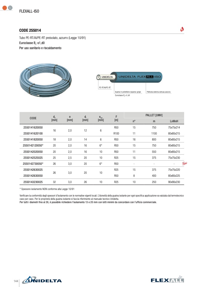 Verificare la conformità degli spessori d'isolamento con le normative vigenti locali. L’idoneità della guaina isolante per ogni specifica applicazione va valutata dal termotecnico