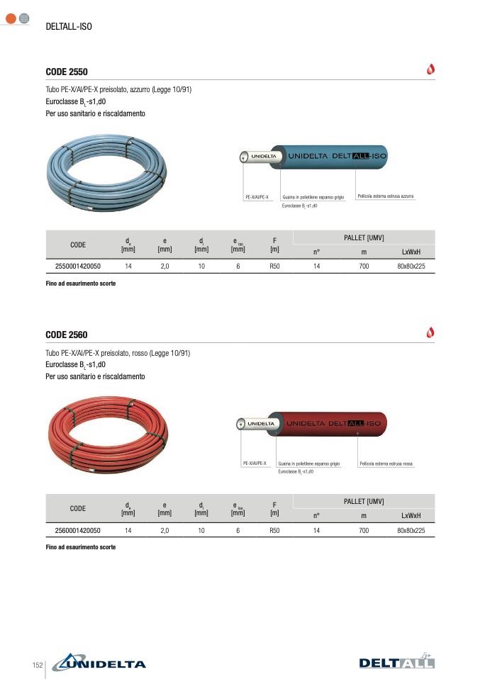 Tubo PE-X/Al/PE-X preisolato, rosso (Legge 10/91)