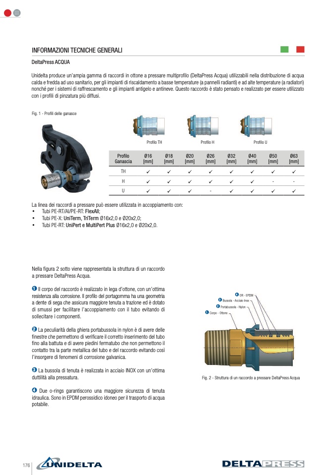 Unidelta produce un’ampia gamma di raccordi in ottone a pressare multiprofilo (DeltaPress Acqua) utilizzabili nella distribuzione di acqua