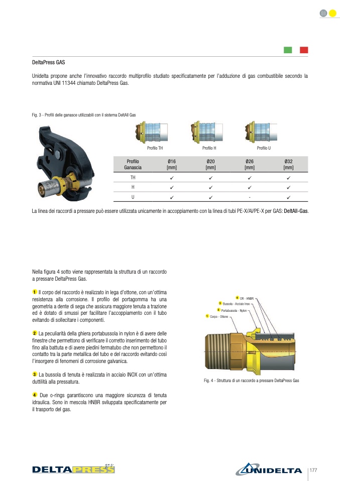 La linea dei raccordi a pressare può essere utilizzata unicamente in accoppiamento con la linea di tubi PE-X/Al/PE-X per GAS: DeltAll-Gas.