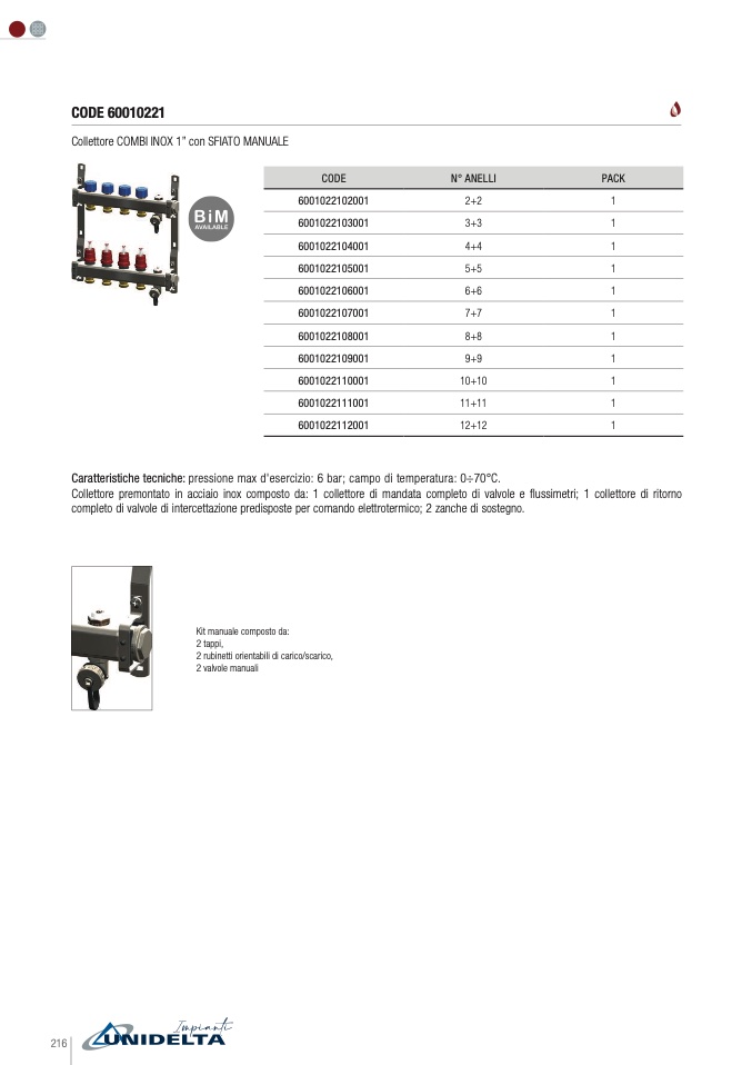 completo di valvole di intercettazione predisposte per comando elettrotermico; 2 zanche di sostegno.