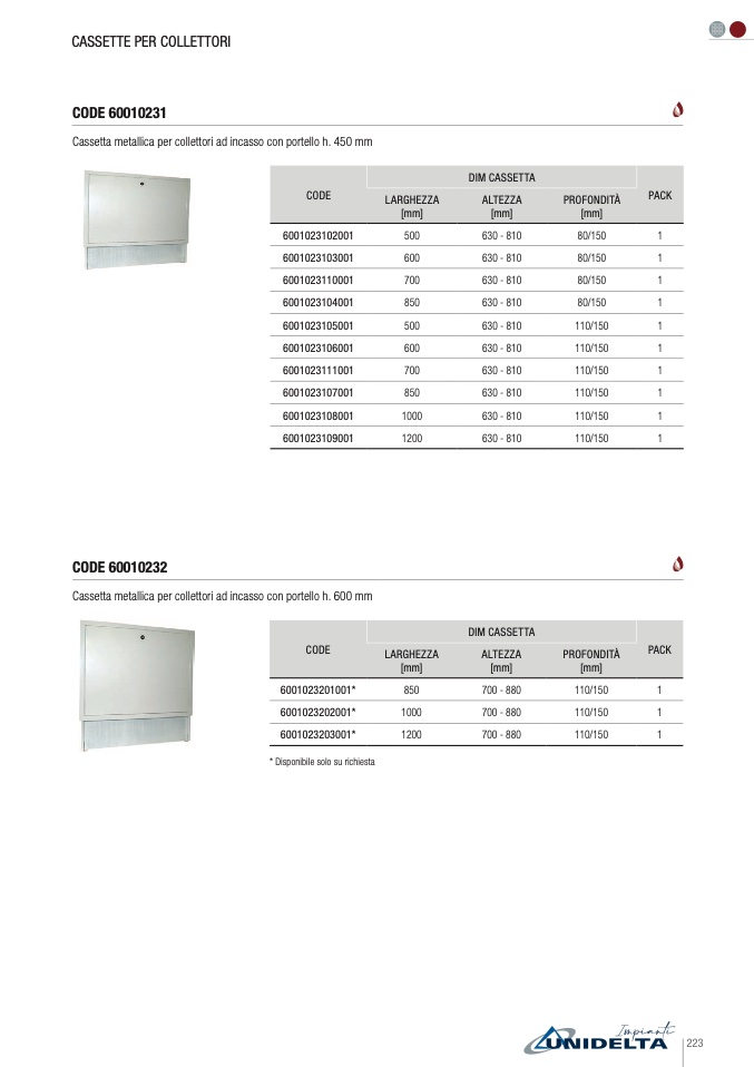 Cassetta metallica per collettori ad incasso con portello h. 600 mm