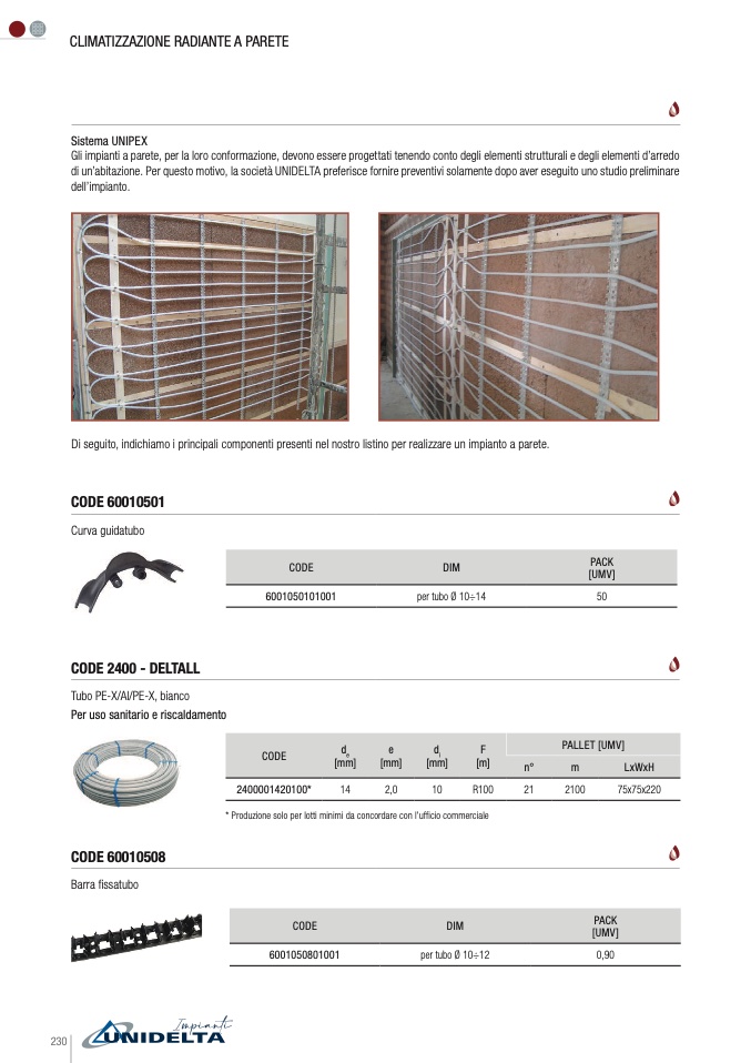 Di seguito, indichiamo i principali componenti presenti nel nostro listino per realizzare un impianto a parete.