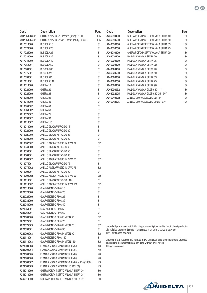 Unidelta S.p.a. reserves the right to make enhancements and changes to products
