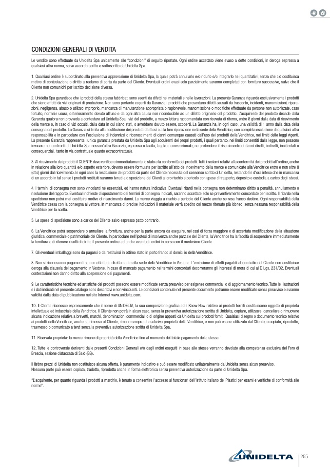 Le vendite sono effettuate da Unidelta Spa unicamente alle “condizioni” di seguito riportate. Ogni ordine accettato viene evaso a dette condizioni, in deroga espressa a