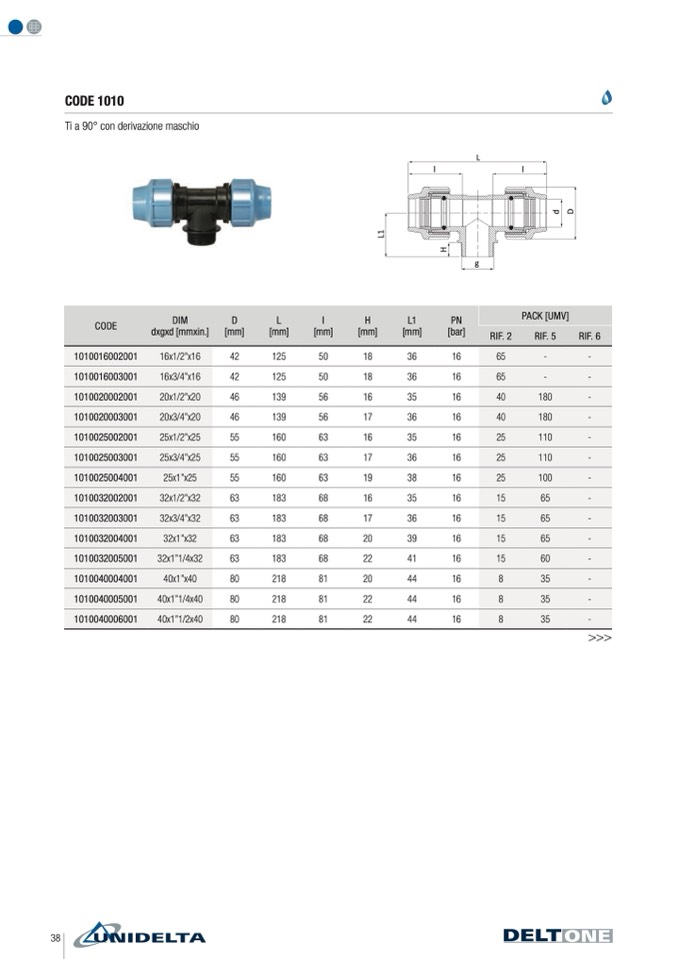 Ti a 90° con derivazione maschio