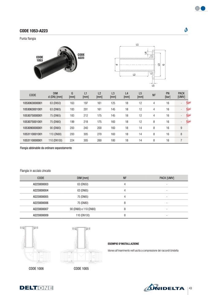 Idoneo all'inserimento nell'uscita a compressione dei raccordi Unidelta