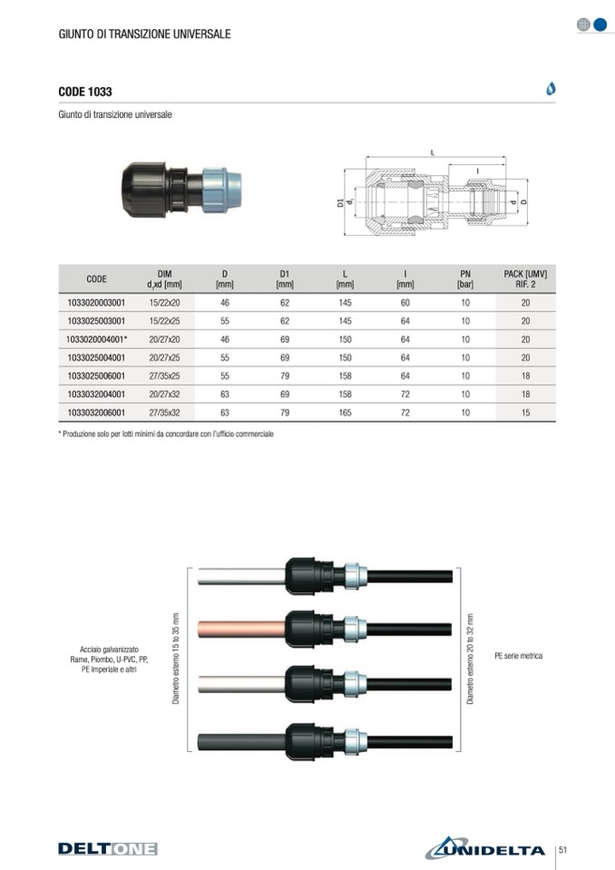 * Produzione solo per lotti minimi da concordare con l’ufficio commerciale