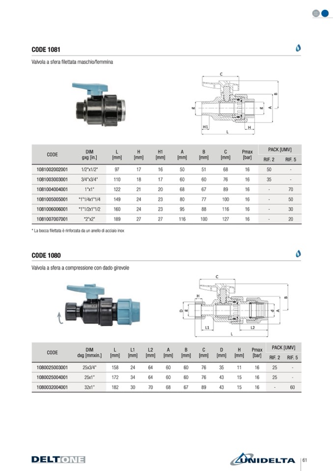 Valvola a sfera a compressione con dado girevole