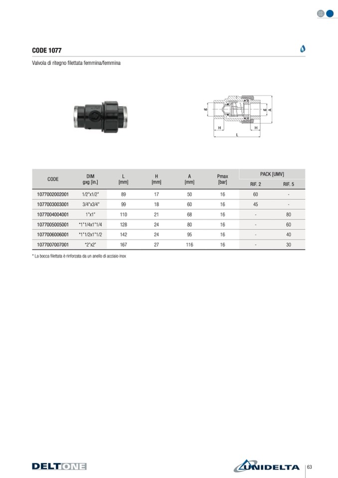 Valvola di ritegno filettata femmina/femmina