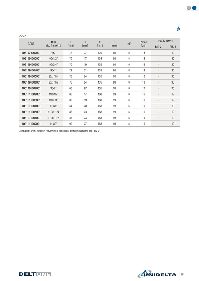 Compatibile anche ai tubi in PVC aventi le dimensioni definite nella norma EN 1452-2