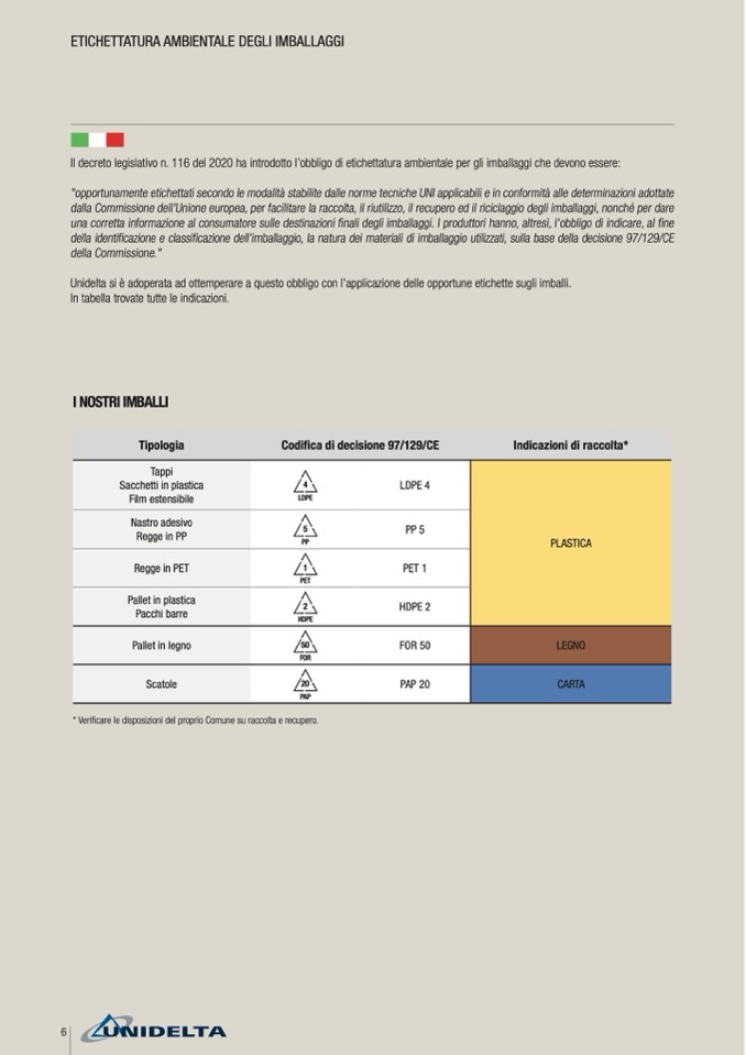 Unidelta si è adoperata ad ottemperare a questo obbligo con l’applicazione delle opportune etichette sugli imballi.