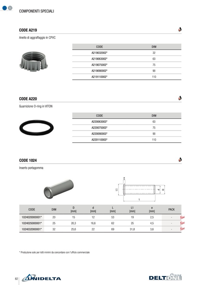 * Produzione solo per lotti minimi da concordare con l’ufficio commerciale