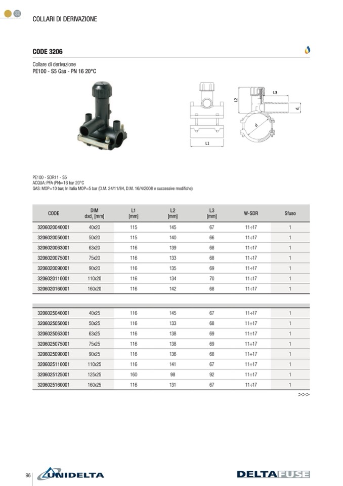 GAS: MOP=10 bar; In Italia MOP=5 bar (D.M. 24/11/84, D.M. 16/4/2008 e successive modi