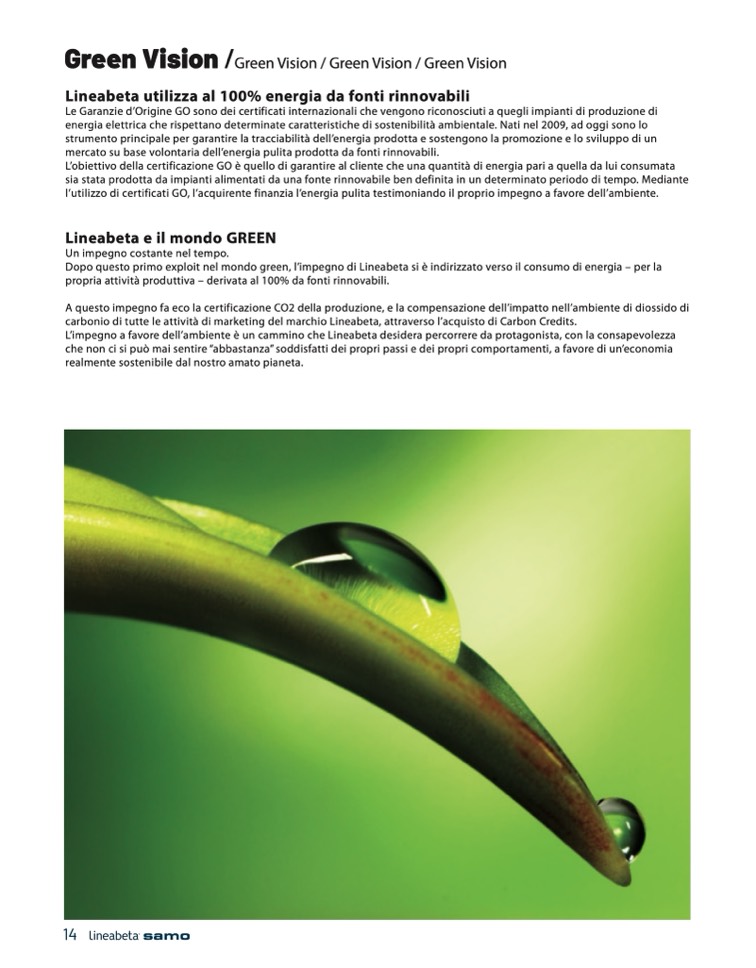 carbonio di tutte le attività di marketing del marchio Lineabeta, attraverso l’acquisto di Carbon Credits.
