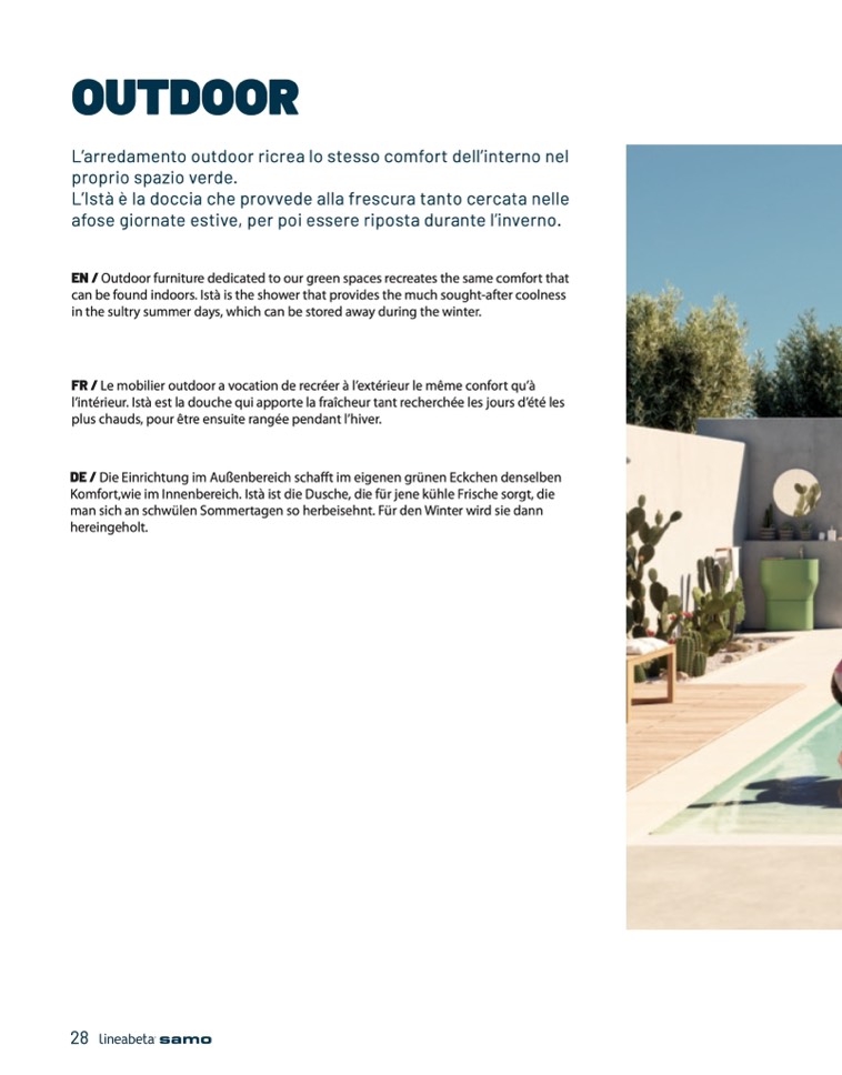 l’intérieur. Istà est la douche qui apporte la fraîcheur tant recherchée les jours d’été les