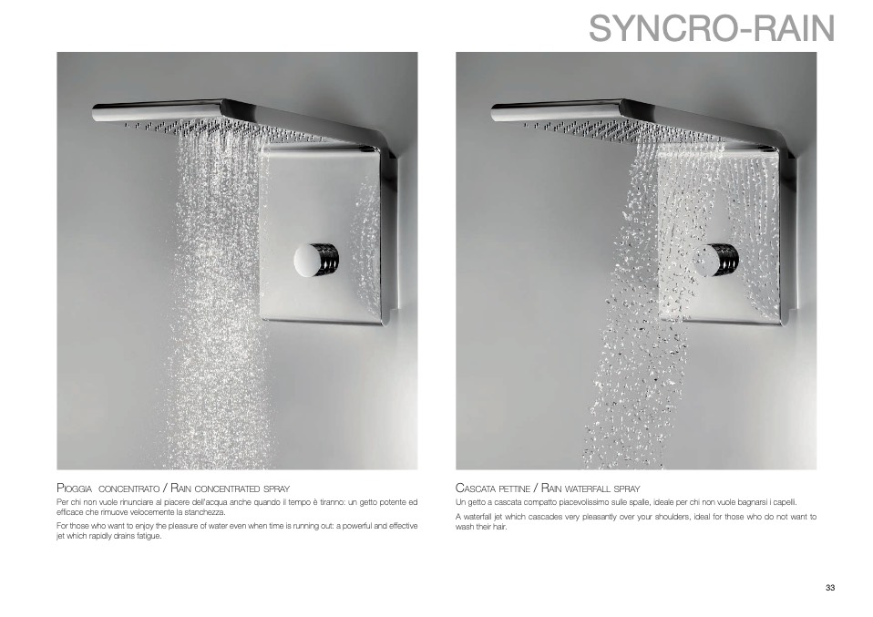 Un getto a cascata compatto piacevolissimo sulle spalle, ideale per chi non vuole bagnarsi i capelli.