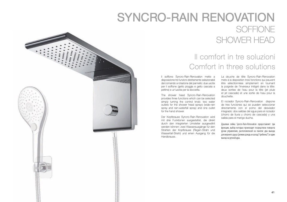 Душевая лейка Syncro-Rain-Renovation предоставляет три