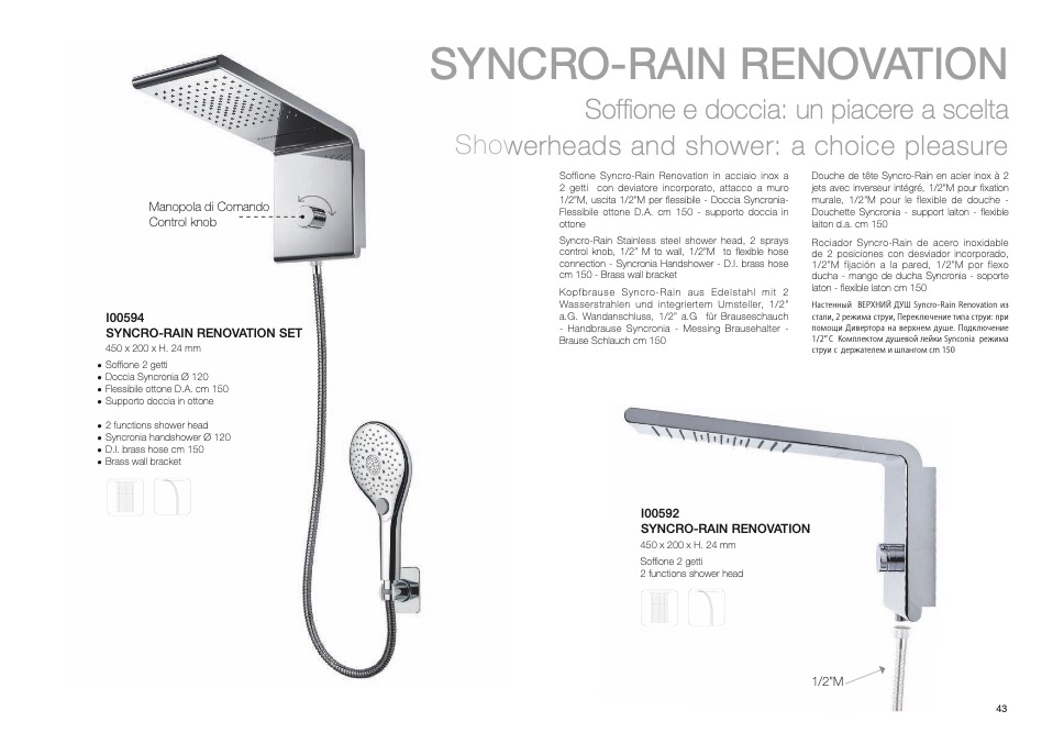 Настенный ВЕРХНИЙ ДУШ Syncro-Rain Renovation из
