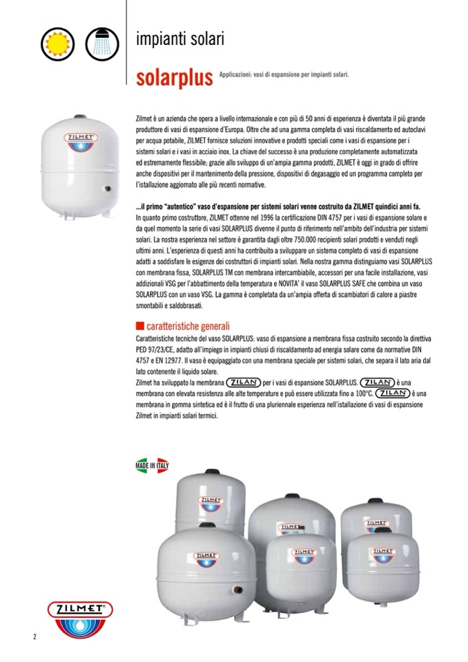 In quanto primo costruttore, ZILMET ottenne nel 1996 la certificazione DIN 4757 per i vasi di espansione solare e