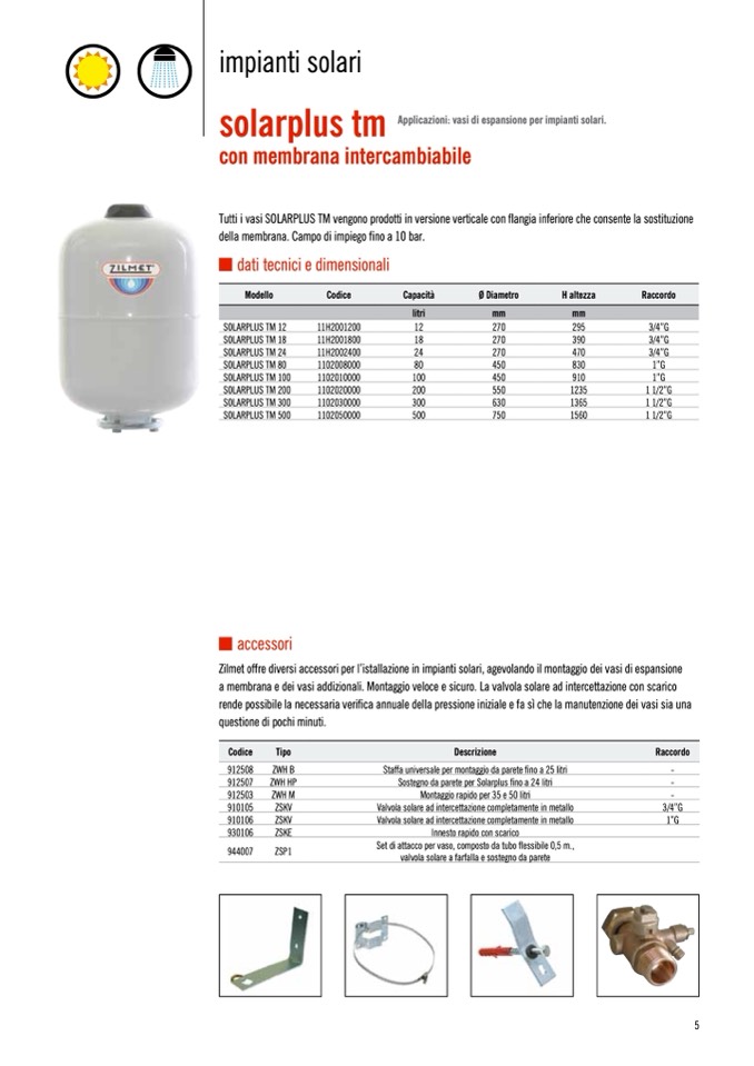 Zilmet offre diversi accessori per l’istallazione in impianti solari, agevolando il montaggio dei vasi di espansione
