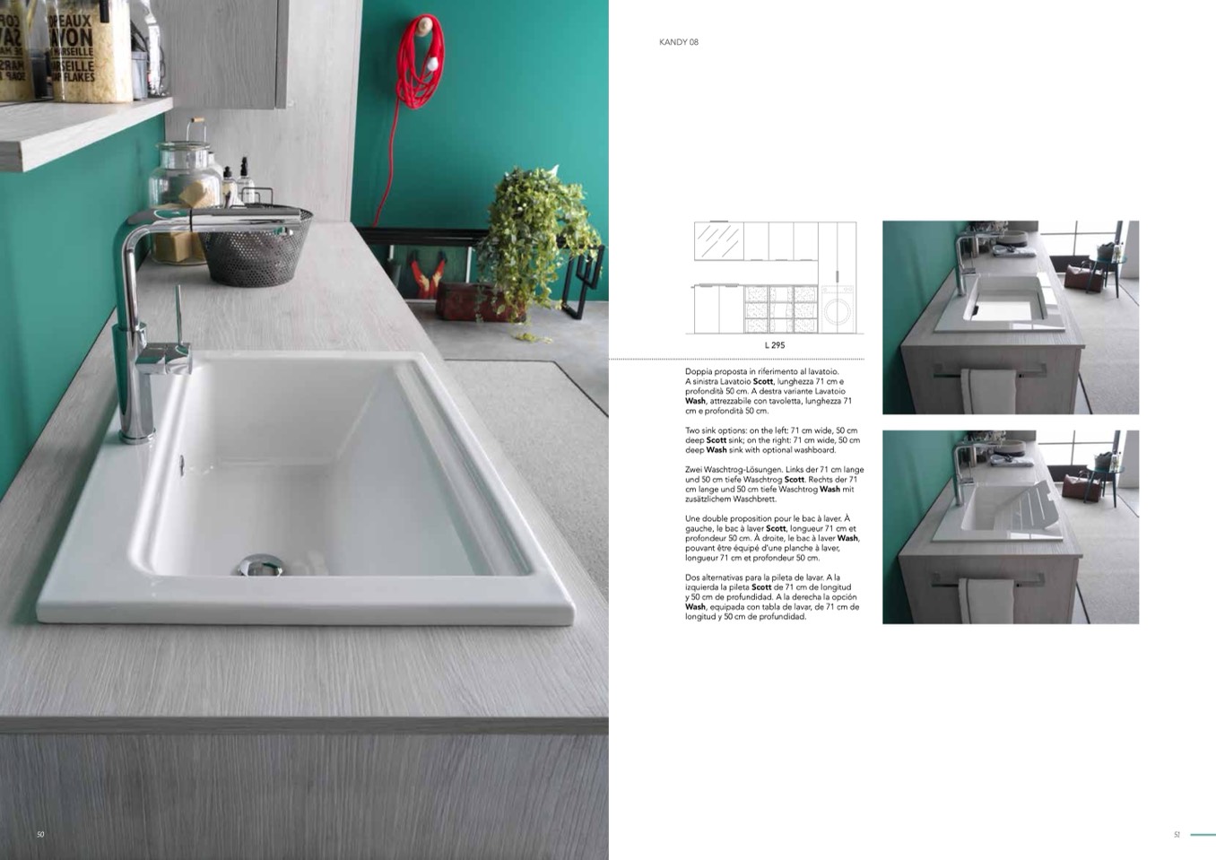 profondità 50 cm. A destra variante Lavatoio