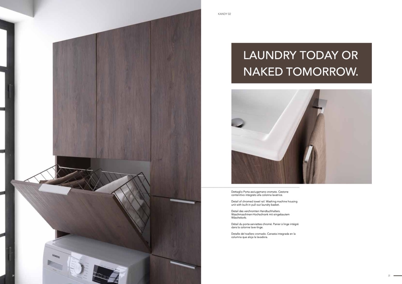 Détail du porte-serviettes chromé. Panier à linge intégré