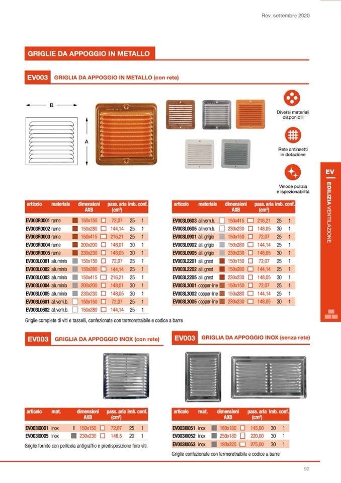 Griglie fornite con pellicola antigraffio e predisposizione foro viti.