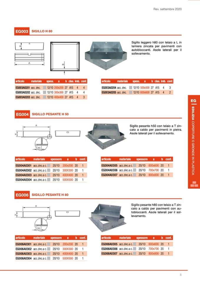 Sigillo leggero h80 con telaio a L in
