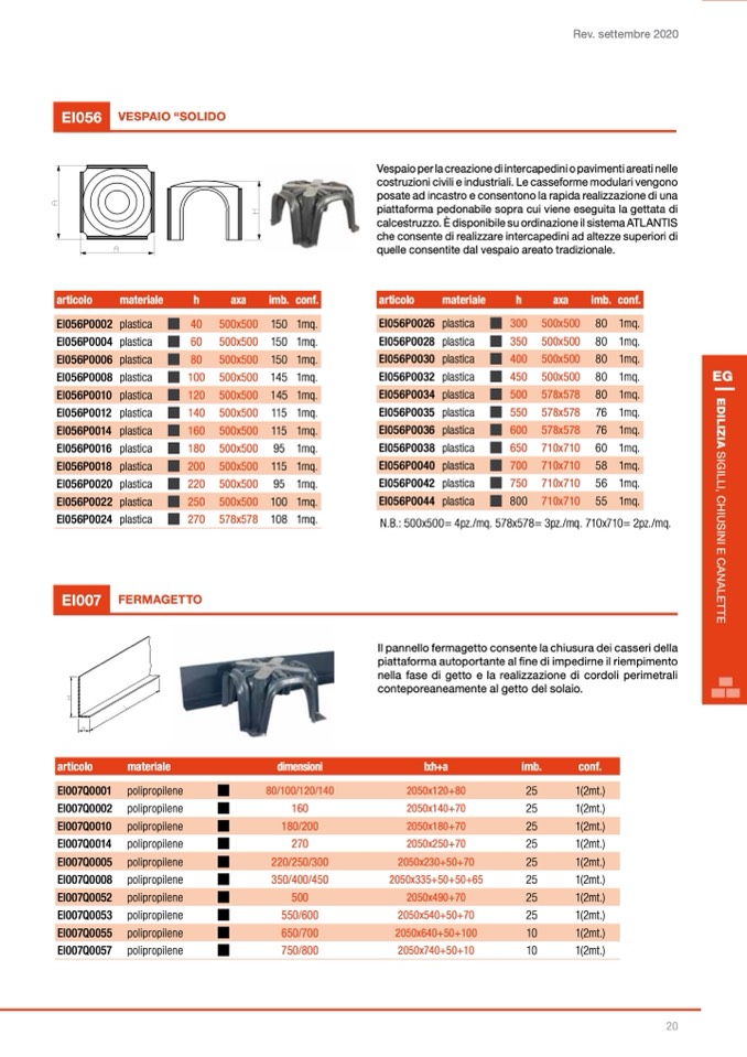 Vespaio per la creazione di intercapedini o pavimenti areati nelle