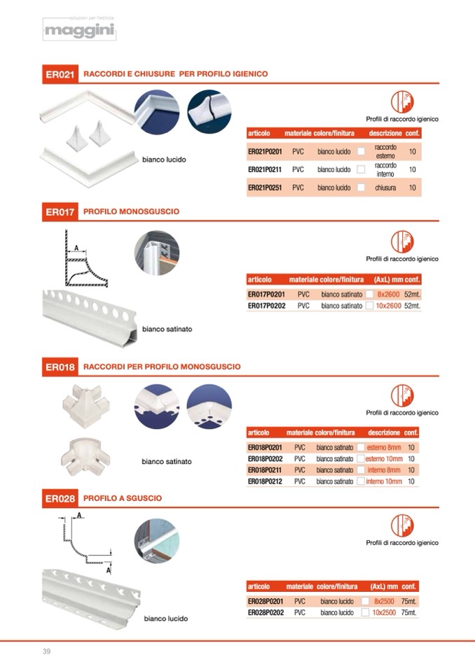 RACCORDI E CHIUSURE PER PROFILO IGIENICO