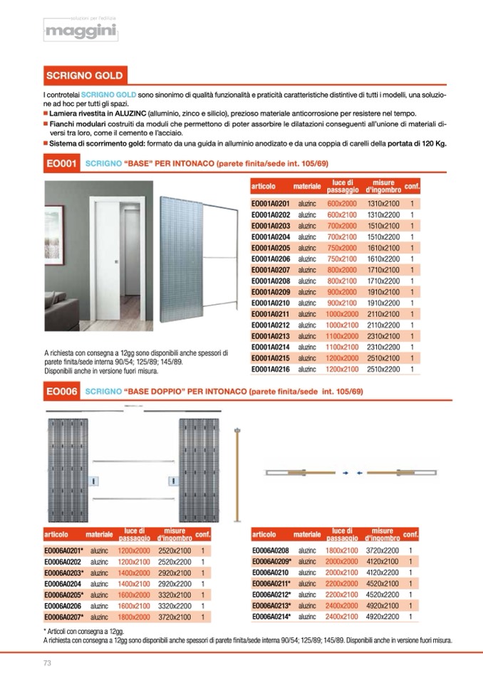 A richiesta con consegna a 12gg sono disponibili anche spessori di parete finita/sede interna 90/54; 125/89; 145/89. Disponibili anche in versione fuori misura.