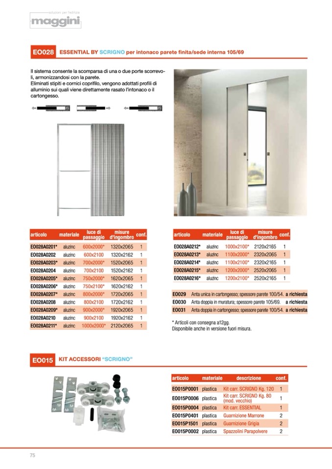EO030 Anta doppia in muratura; spessore parete 105/69.