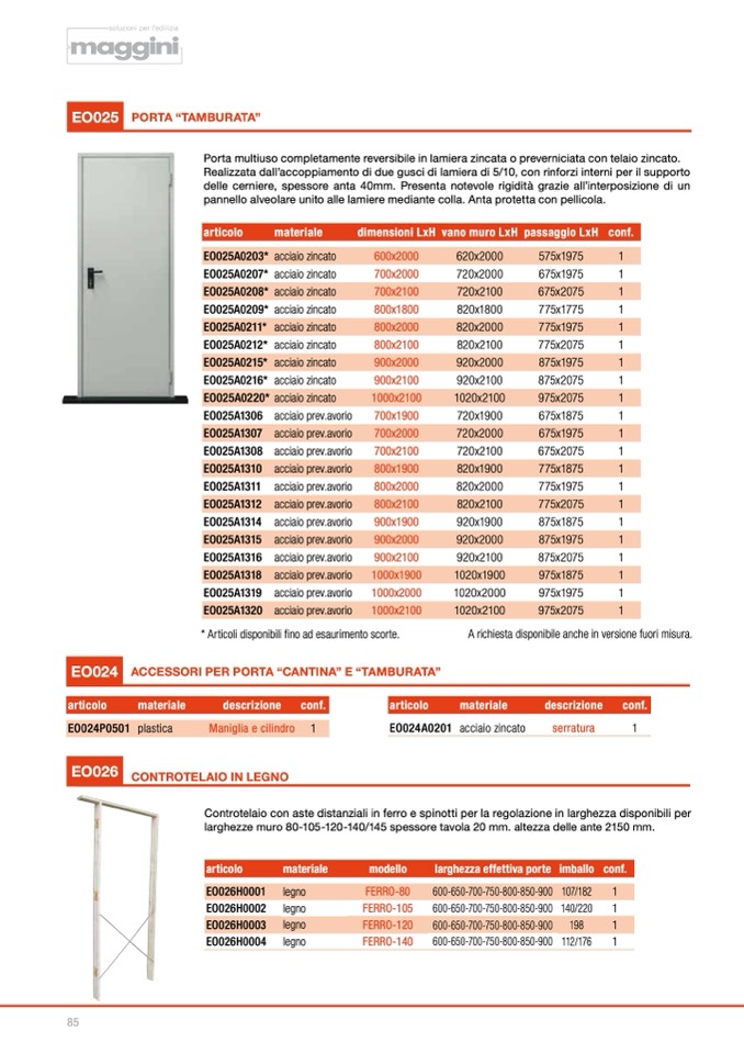 Porta multiuso completamente reversibile in lamiera zincata o preverniciata con telaio zincato.