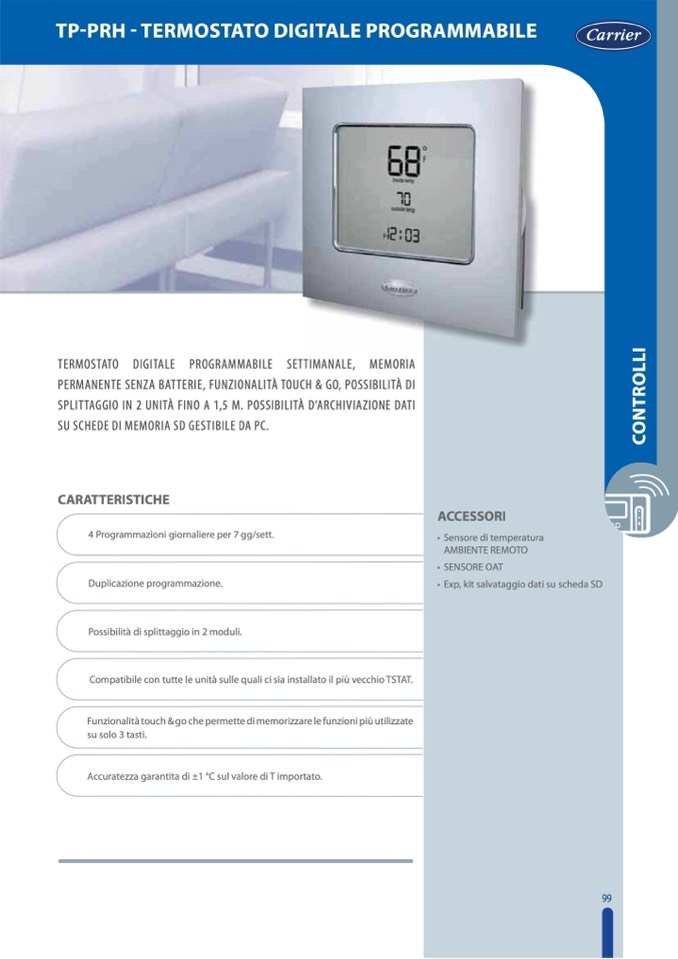 TERMOSTATO DIGITALE PROGRAMMABILE SETTIMANALE, MEMORIA