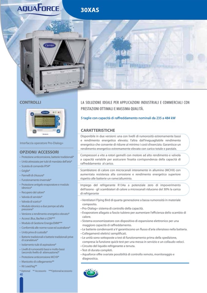 • Aquaforce offre svariate possibilità di controllo remoto, monitoraggio e