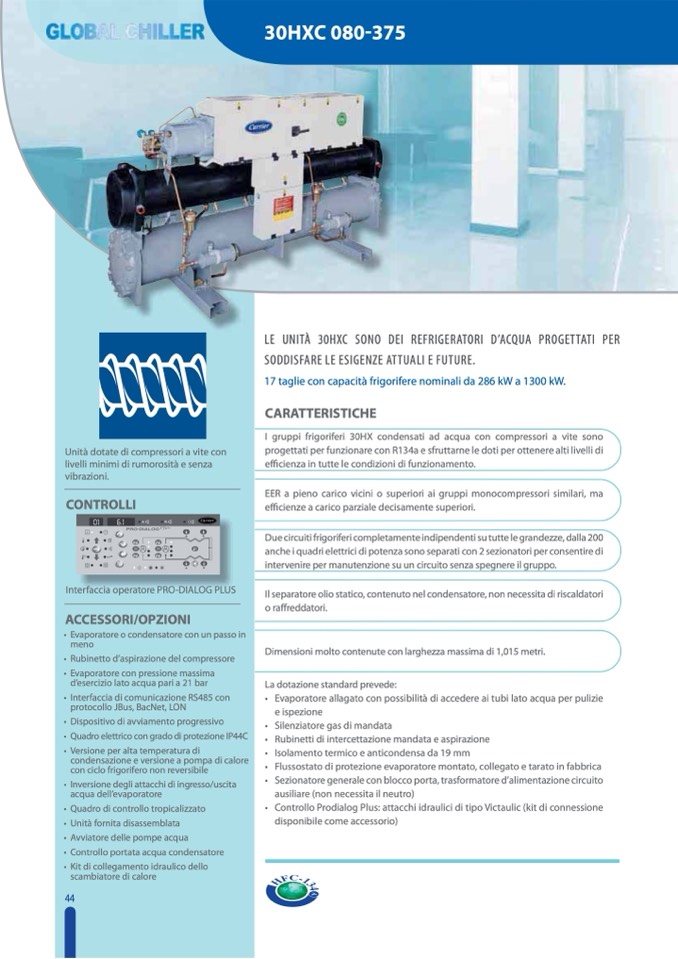 LE UNITÀ 30HXC SONO DEI REFRIGERATORI D’ACQUA PROGETTATI PER