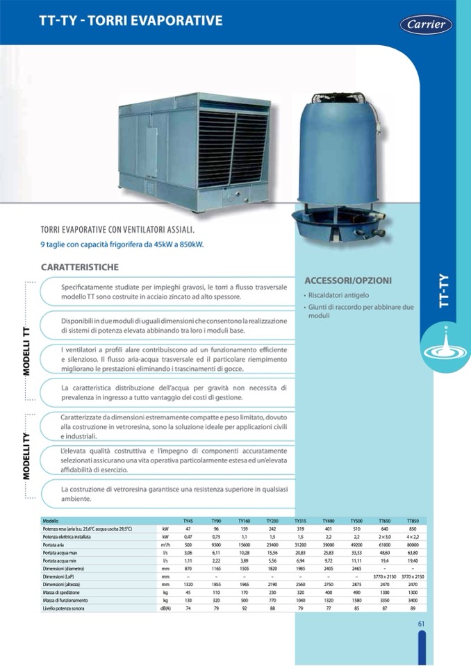 TORRI EVAPORATIVE CON VENTILATORI ASSIALI.
