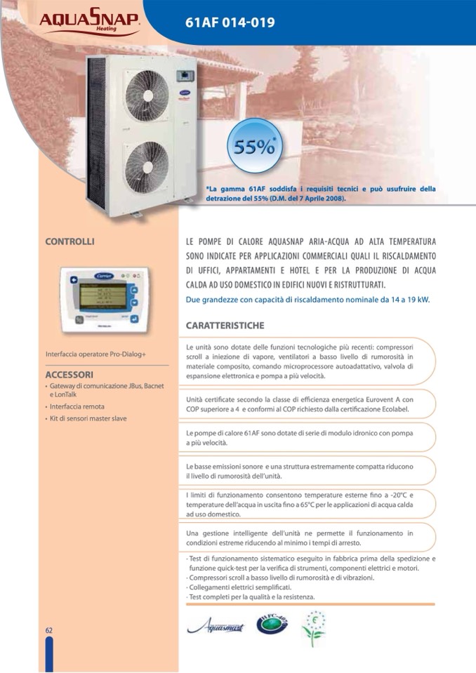 LE POMPE DI CALORE AQUASNAP ARIA-ACQUA AD ALTA TEMPERATURA